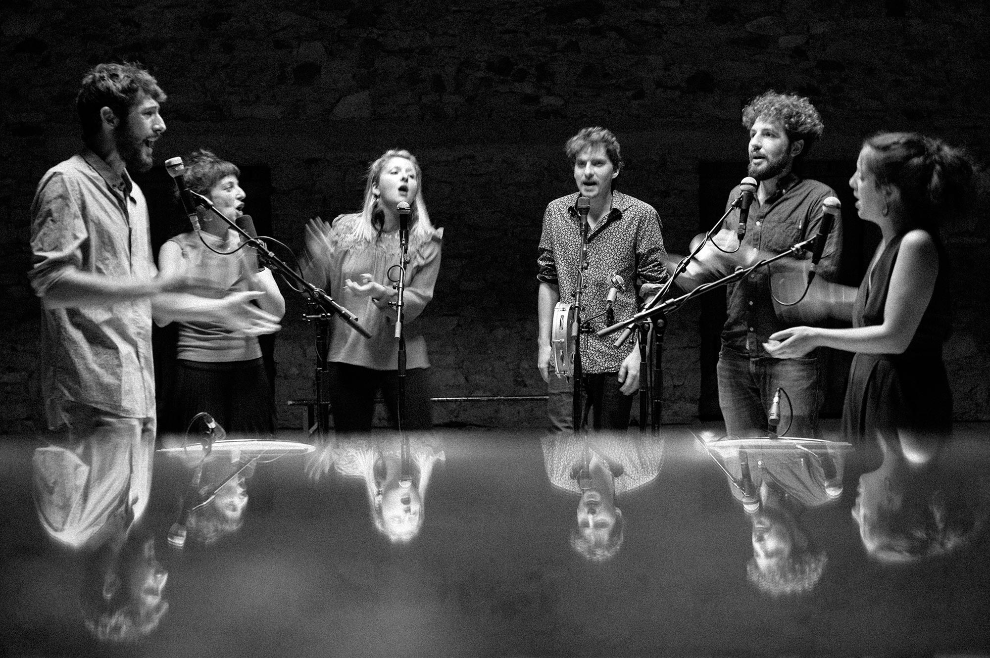 Il gruppo si definisce “un coro popolare del Massiccio Centrale”, ma la loro proposta è più radicale di quanto questo appellativo possa lasciare intravedere: voci a più parti, tamburi e battito delle mani che trasfigurano i repertori locali in magnetica, pulsante e implacabile conflagrazione. Trance e spirito punk sono termini tirati spesso in ballo per inquadrare le polifonie eterodosse a forte tasso ritmico del sestetto dal vibrante vigore visuale sul palco, che rappresenta una nuova vitale scena di nuovo folk della Francia profonda.